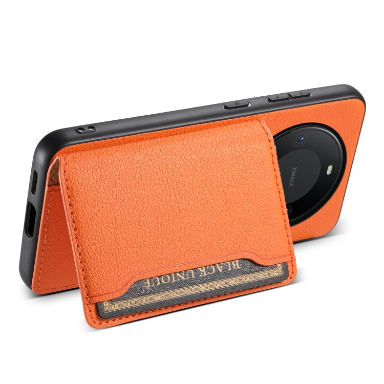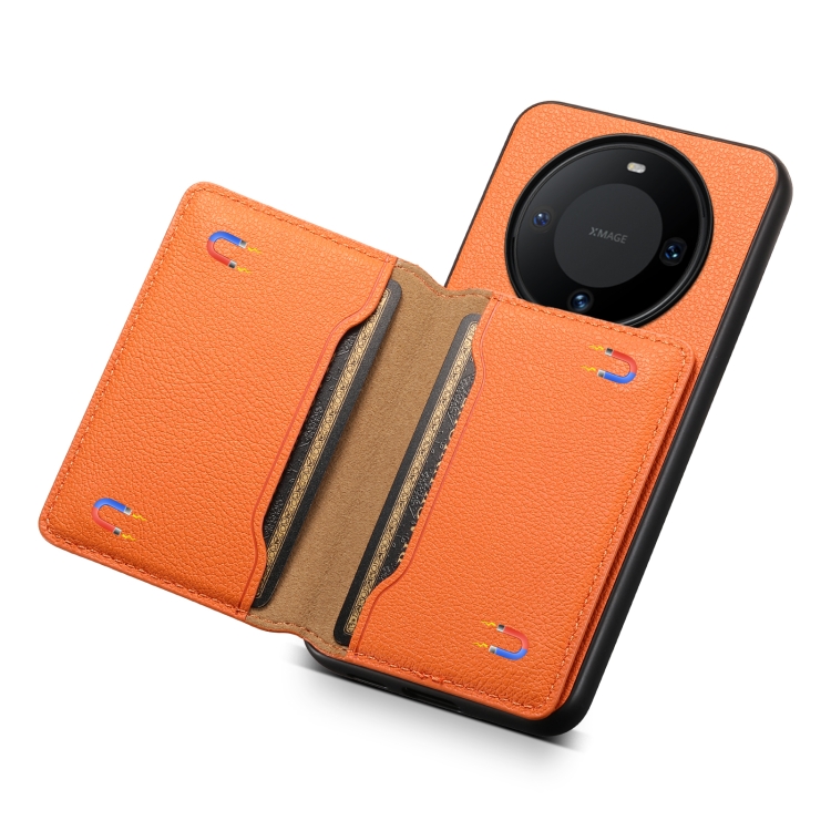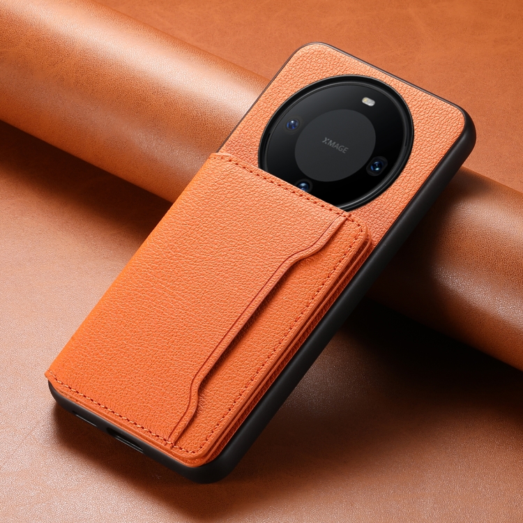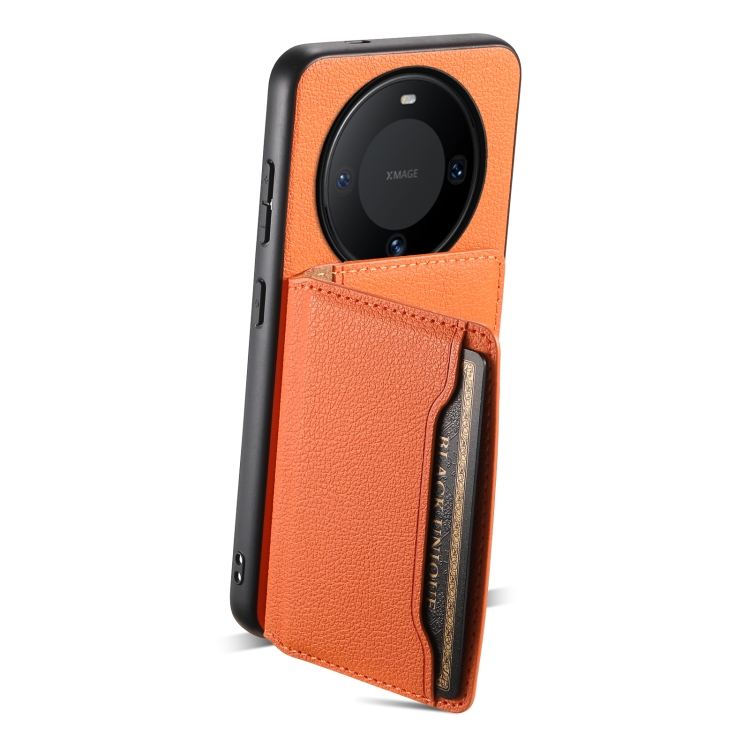 Funda para Huawei Mate 60 con Bolsa para Tarjetas y Textura de Pantorrilla (Naranja)