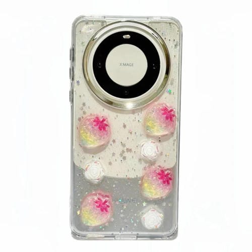 • 1x Funda TPU para Huawei Mate 60 Pro con Flor de Fresa 3D y Marco Galvanizado (Fresa Rosa)