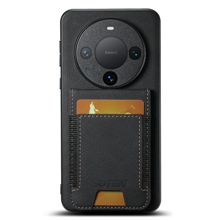 Funda Suteni H03 para Huawei Mate 60 Pro con Soporte para Tarjeta Cuero Litchi (Negro)