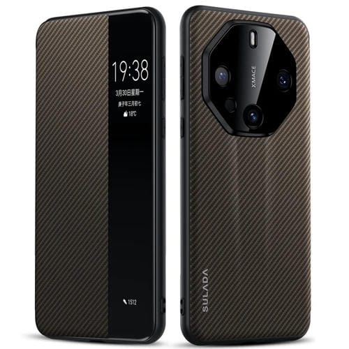 - 1x Funda de Cuero Huawei Mate 60 Rs Ultimate Sulada Kevlar 600D con Ventana Inteligente (Marrón)