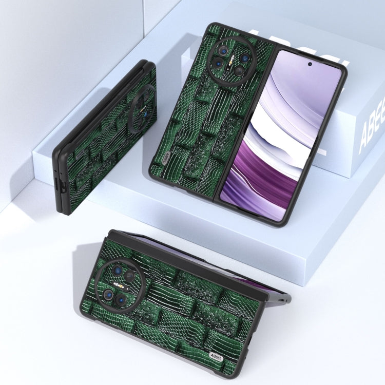 Funda para Huawei Mate X5 Abeel Cuero Genuino con Patrón Mahjong y Borde Negro (Verde)