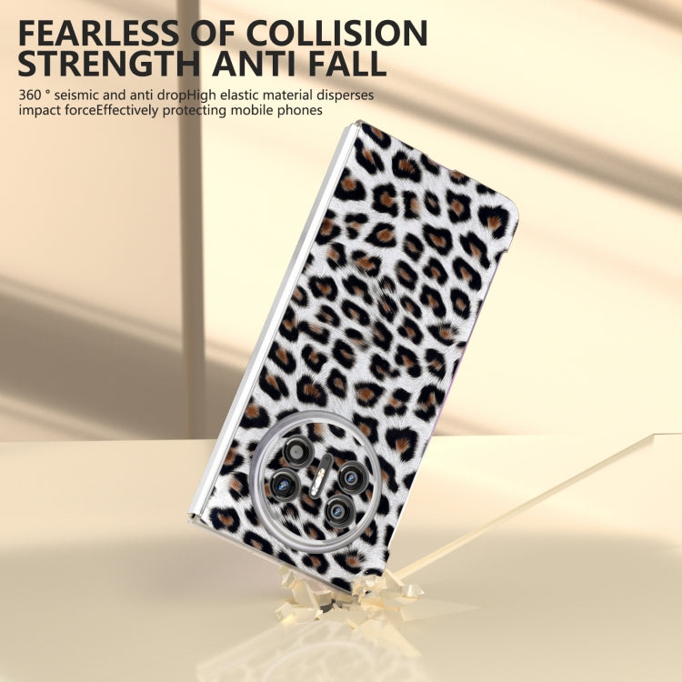Estuche para Huawei Mate X5 con Estampado de Leopardo y Borde Transparente Esmerilado (Plateado)