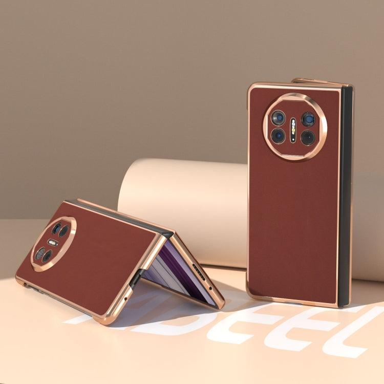 Funda para Huawei Mate X5 con Nanochapado de Cuero Genuino Serie Silk (Café)