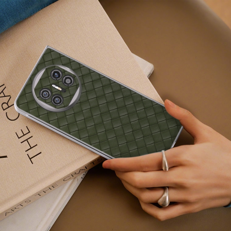 Funda para Huawei Mate X5 de PU con Marco Translúcido Esmerilado y Textura Tejida (Verde)