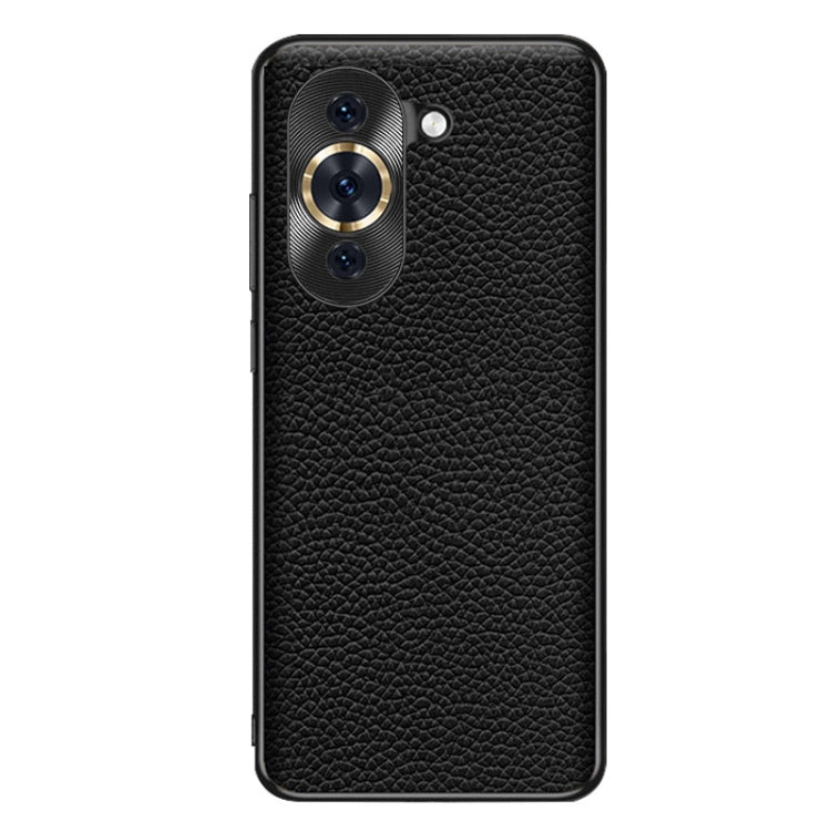 Funda para Huawei Nova 10 Pro con Textura Litchi de Cuero Genuino (Negro)