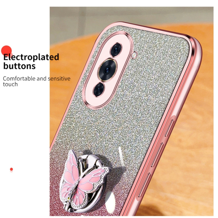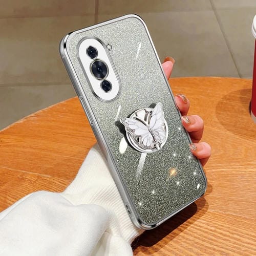 Funda TPU para Huawei Nova 10 Pro con Soporte Mariposa y Brillo Degradado (Plata)