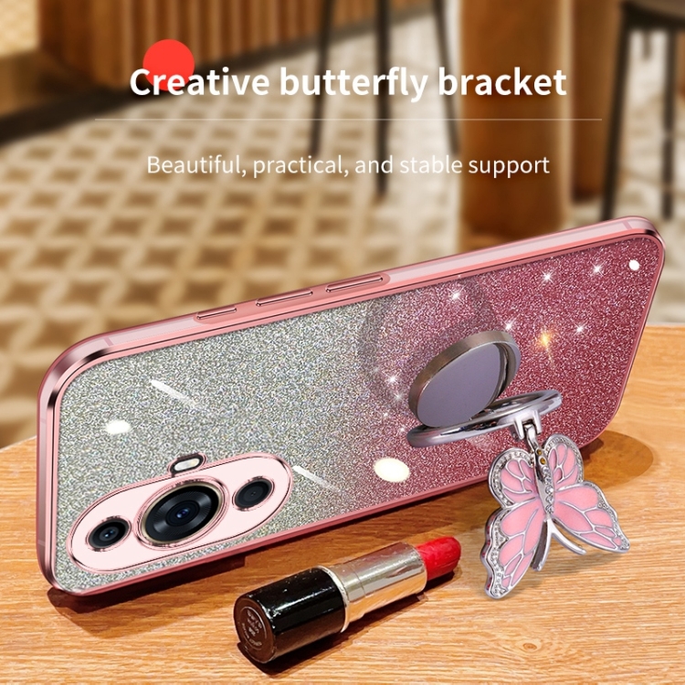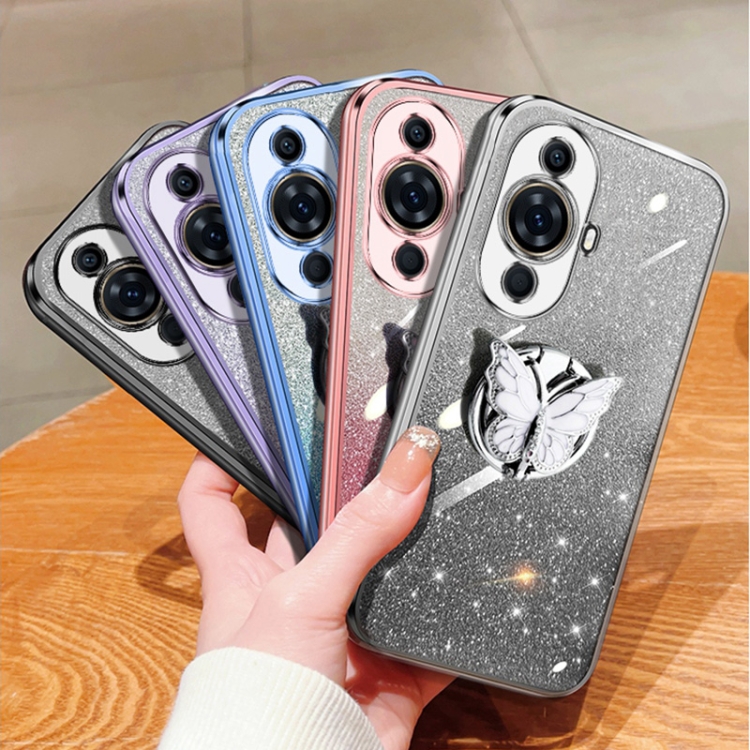- 1x Funda para Huawei Nova 11 Pro de TPU con Soporte de mariposa y brillo degradado (Azul Sierra)
