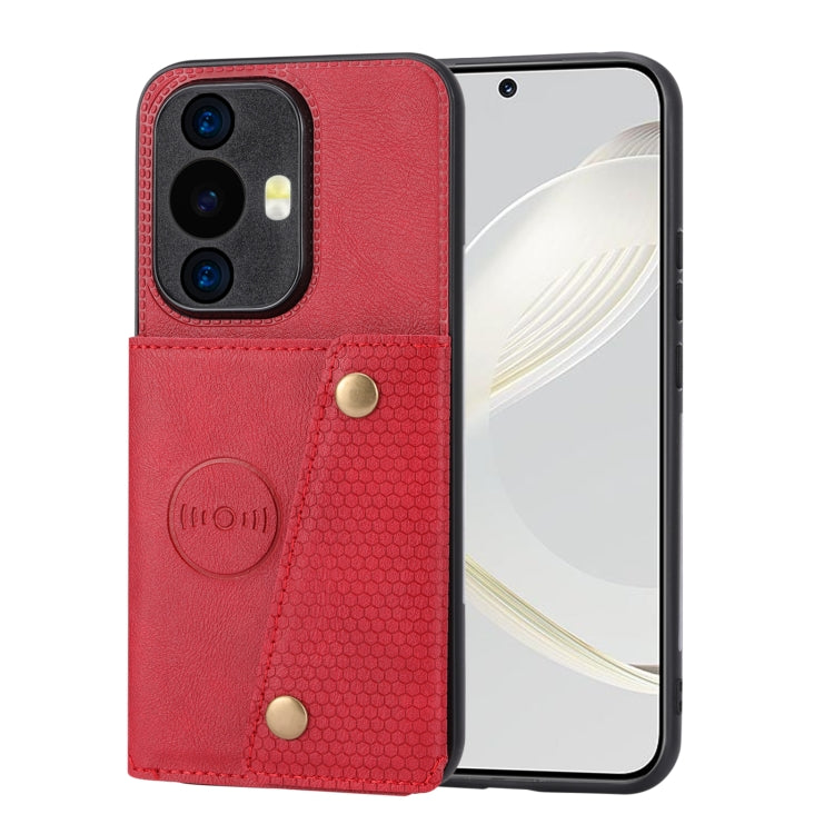 Estuche Magnético para Huawei Nova 11 con Ranuras para Tarjetas y Doble Hebilla (Rojo)