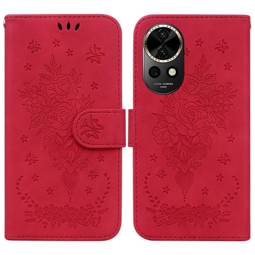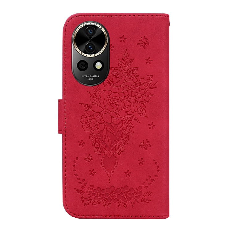 - 1x Funda de Cuero para Huawei Nova 12 con Relieve de Mariposa y Rosa (Rojo)