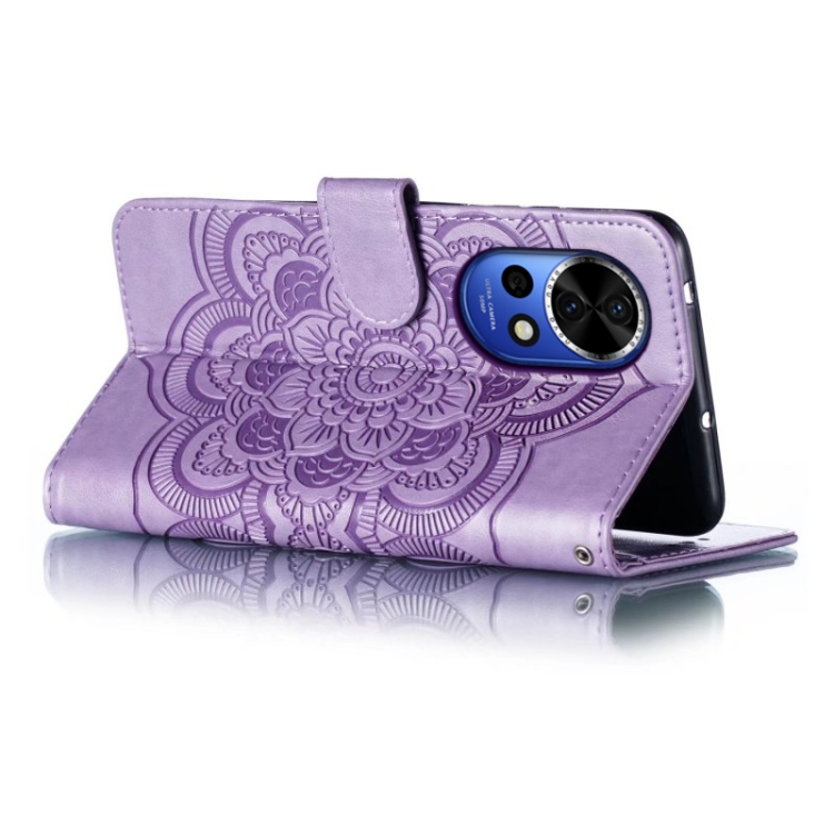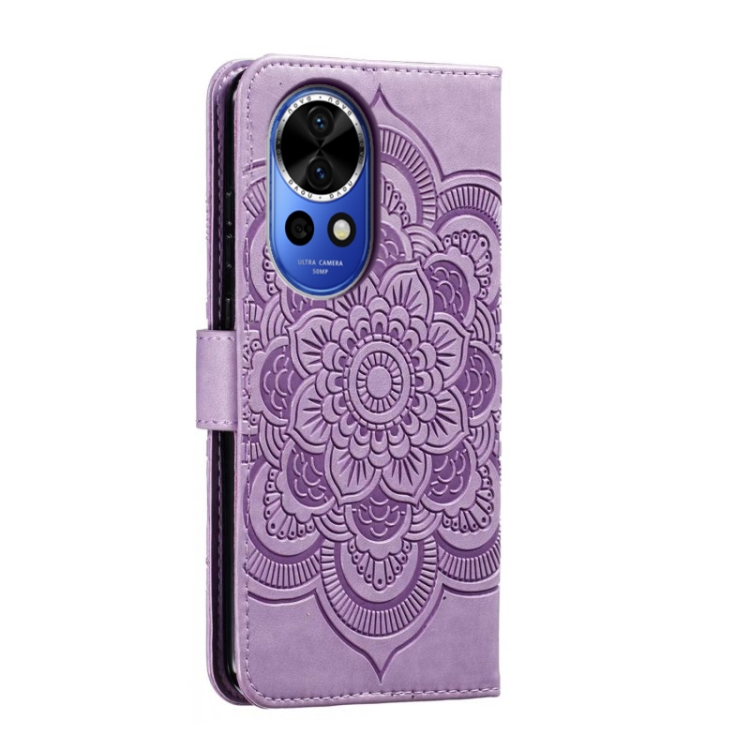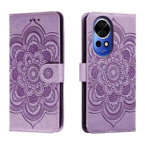 Funda de Cuero para Huawei Nova 12 con Patrón en Relieve Sun Mandala (Púrpura)