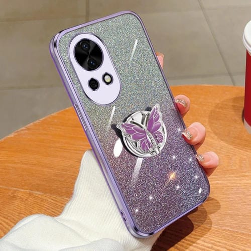 Funda para Huawei Nova 12 TPU con Soporte de Mariposa y Brillo Degradado (Púrpura)