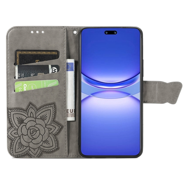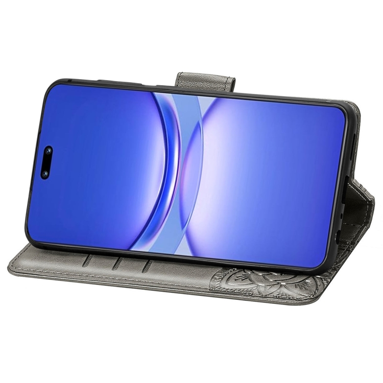Funda de Cuero Huawei Nova 12 Pro Butterfly Love Flower en Relieve (Gris)