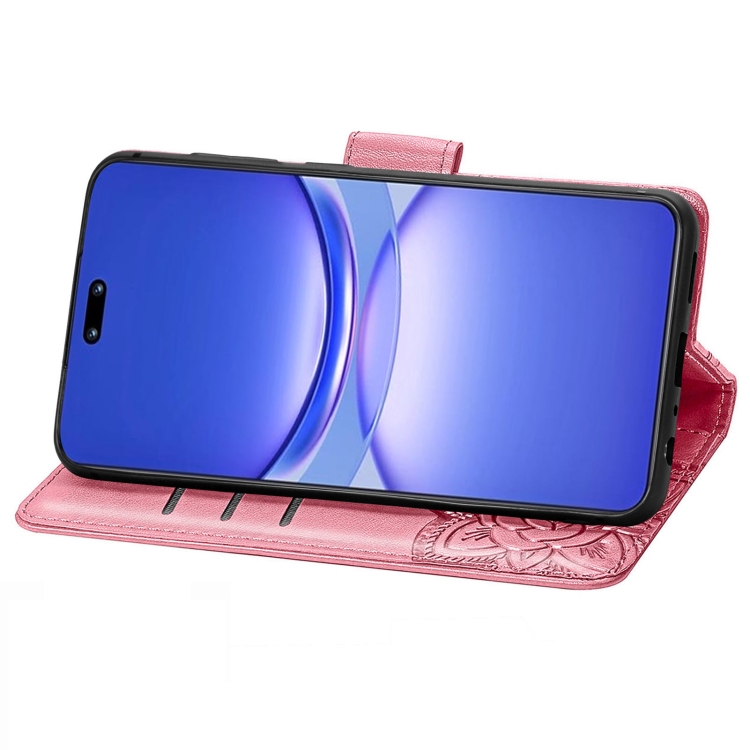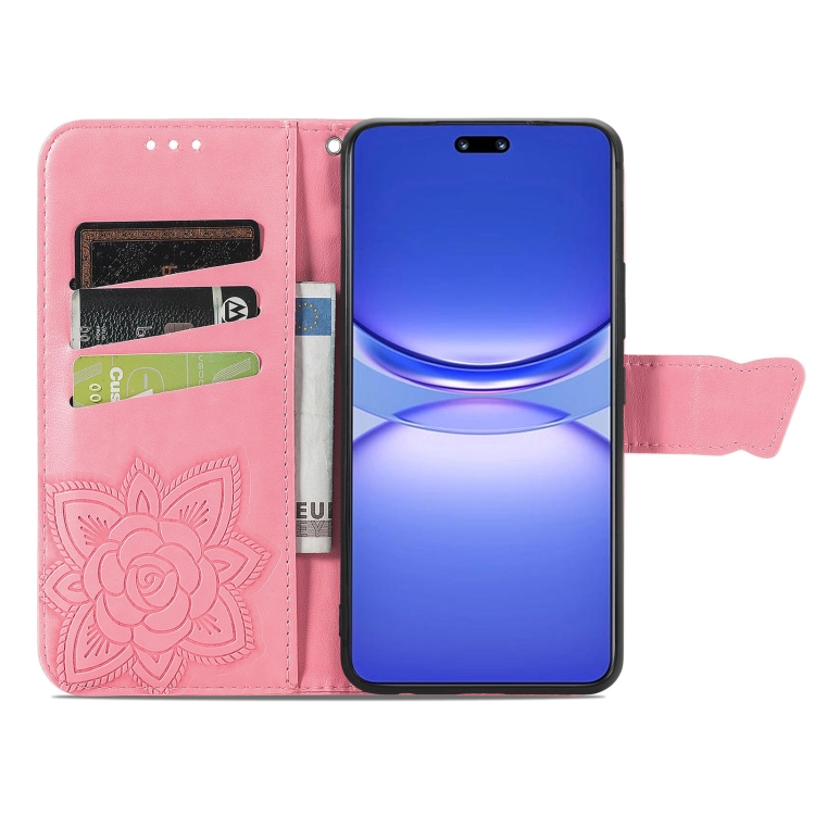 Funda de Cuero Huawei Nova 12 Pro Butterfly Love Flower en Relieve (Rosa)