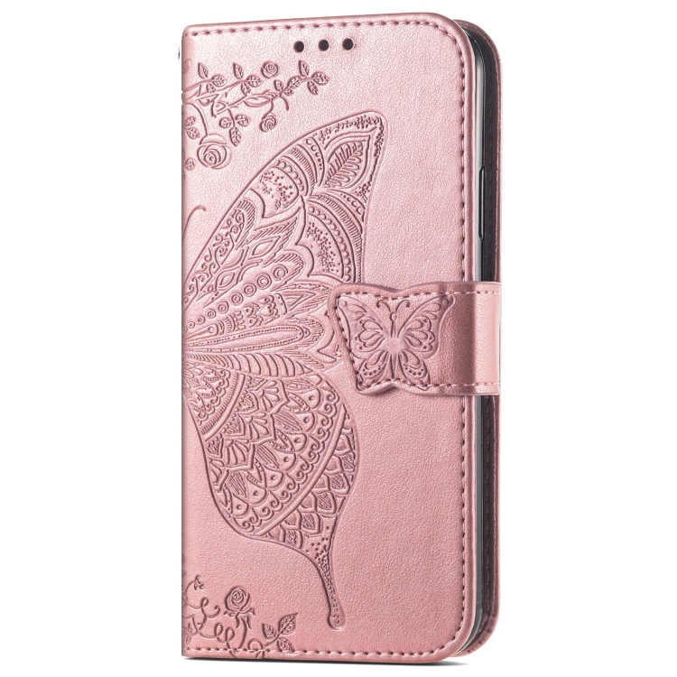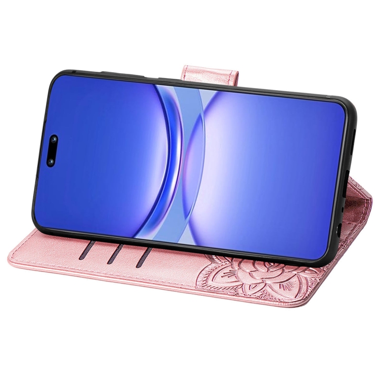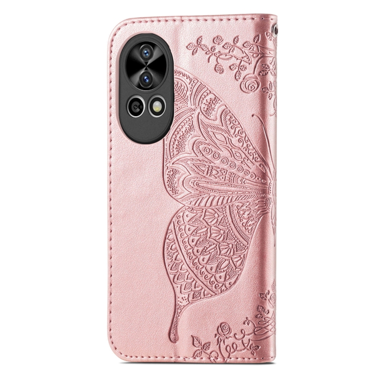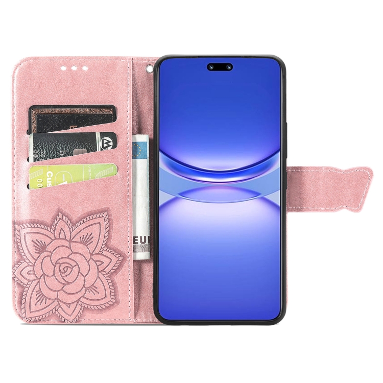 Funda de Cuero Huawei Nova 12 Pro Butterfly Love Flower en Relieve (Oro Rosa)