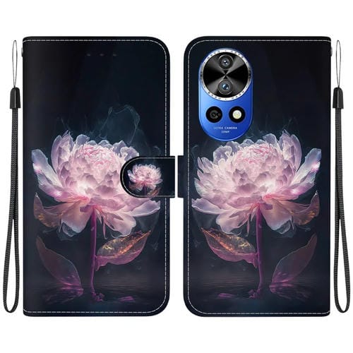 Funda de Cuero Huawei Nova 12 Pro con Dibujo Coloreado y Textura de Cristal (Peonía Púrpura)