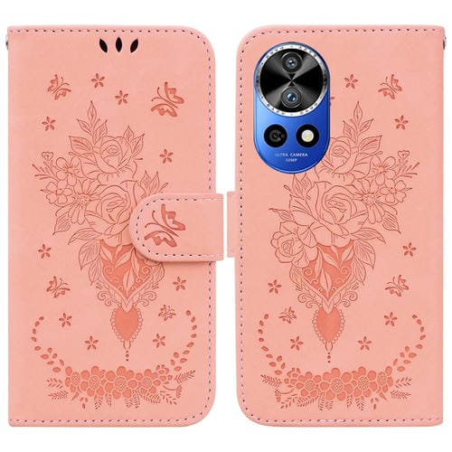 Funda para Huawei Nova 12 Pro y Nova 12 Ultra de Cuero con Relieve de Mariposa y Rosa (Rosa)