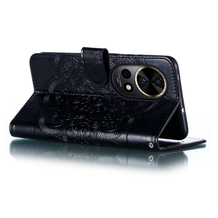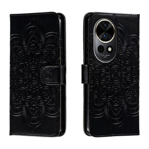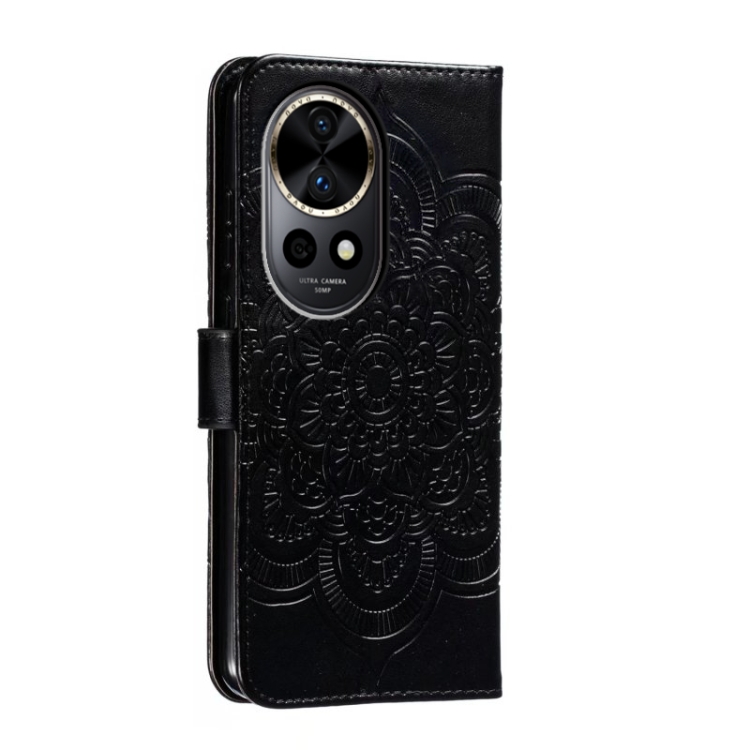 Funda de Cuero Huawei Nova 12 Pro con Patrón en Relieve Sun Mandala (Negro)