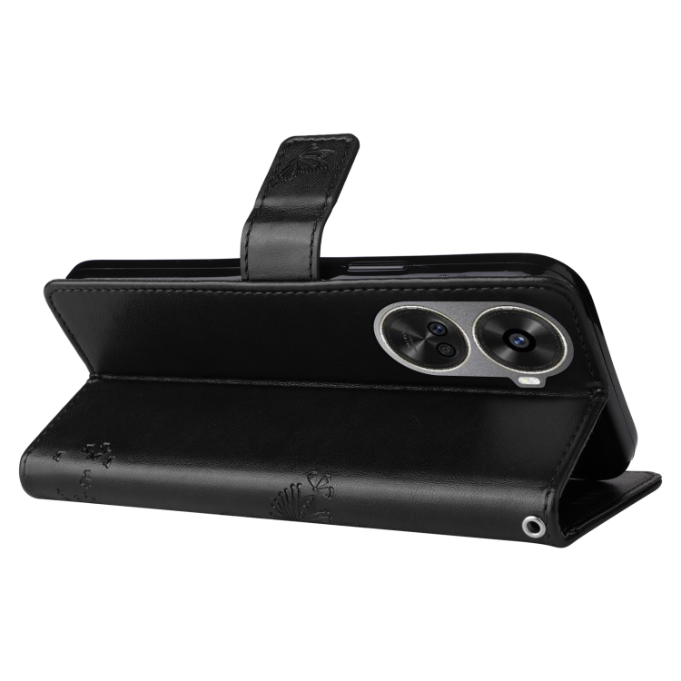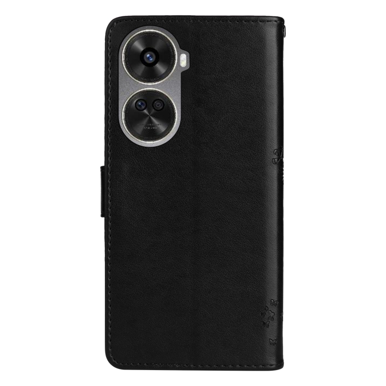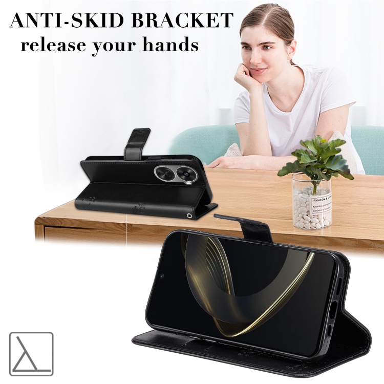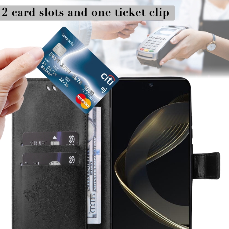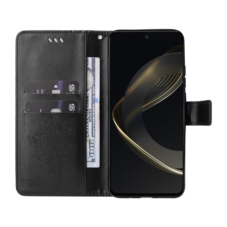 Funda para Huawei Nova 12 Se y Nova 11 Se de Cuero con Tapa y Patrón en Relieve Árbol y Gato (Negro)