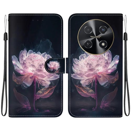 Funda de Cuero para Huawei Nova 12I 4G con Dibujo Coloreado y Textura de Cristal (Peonía Púrpura)
