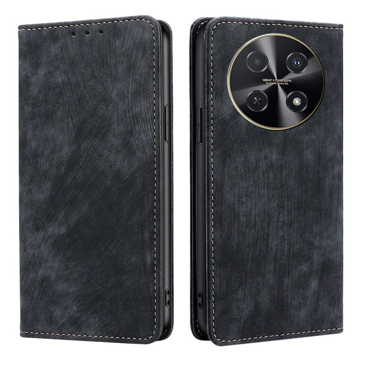 Funda de Cuero Magnética para Huawei Nova 12I 4G con Rfid y Cepillo Antirrobo (Negro)