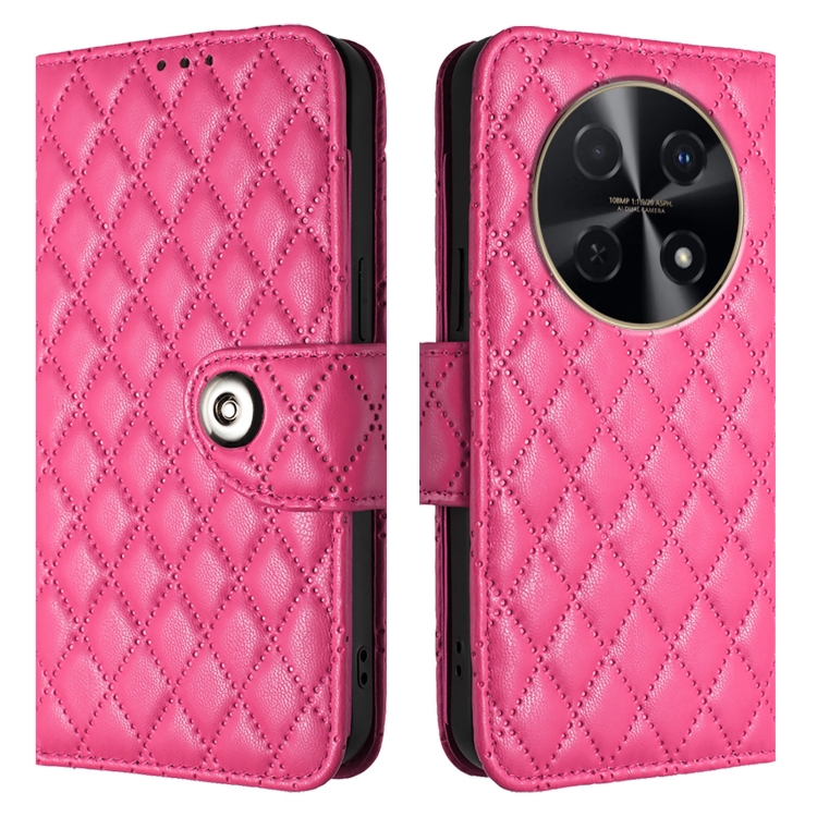 - 1x Funda de Cuero para Huawei Nova 12I con Tapa, Textura Rómbica y Cordón (Rojo Rosa)