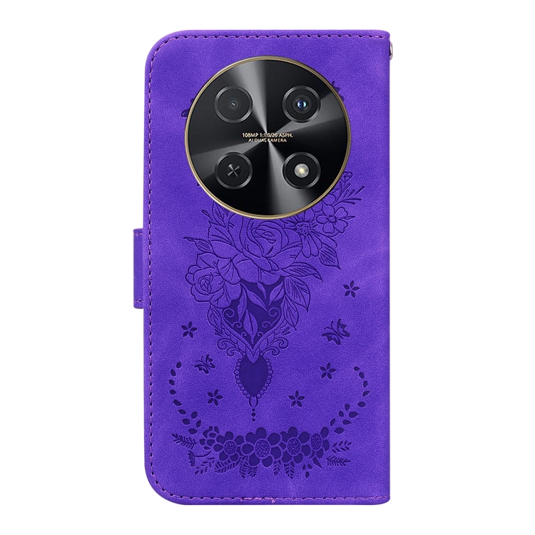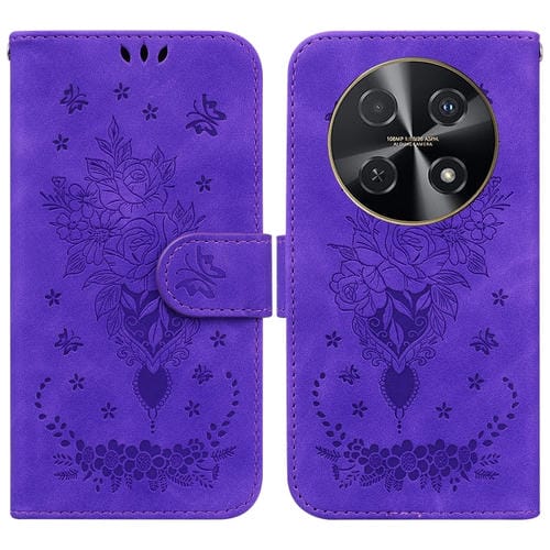 - 1x Funda para Huawei Nova 12I de Cuero con Relieve de Mariposa y Rosa (Púrpura)