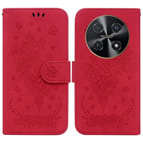 Funda para Huawei Nova 12I de Cuero con Relieve de Mariposa y Rosa (Rojo)