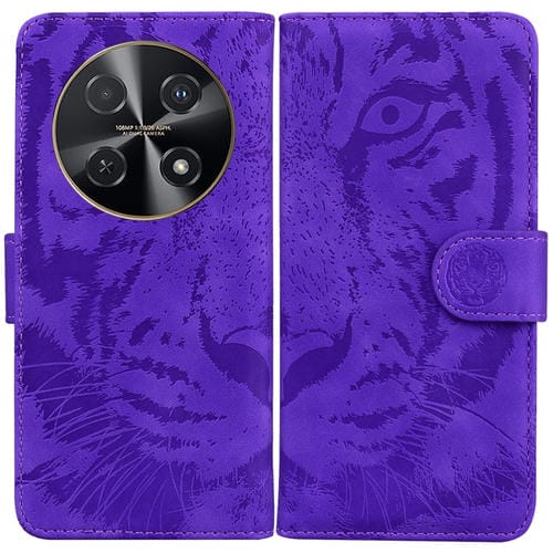 Funda para Huawei Nova 12I de Cuero con Tapa y Patrón en Relieve de Tigre (Púrpura)