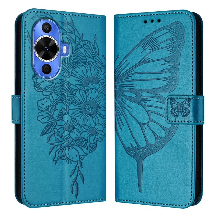 Funda de Cuero para Huawei Nova 12S 4G con Mariposa en Relieve (Azul)