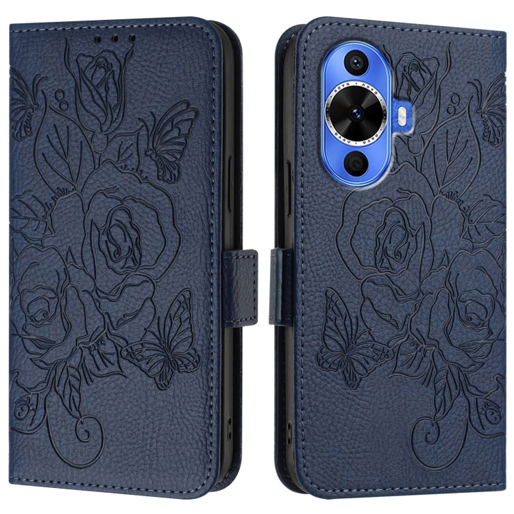- 1x Funda de Cuero Antirrobo RFID para Huawei Nova 12S 4G con Relieve (Azul Oscuro)