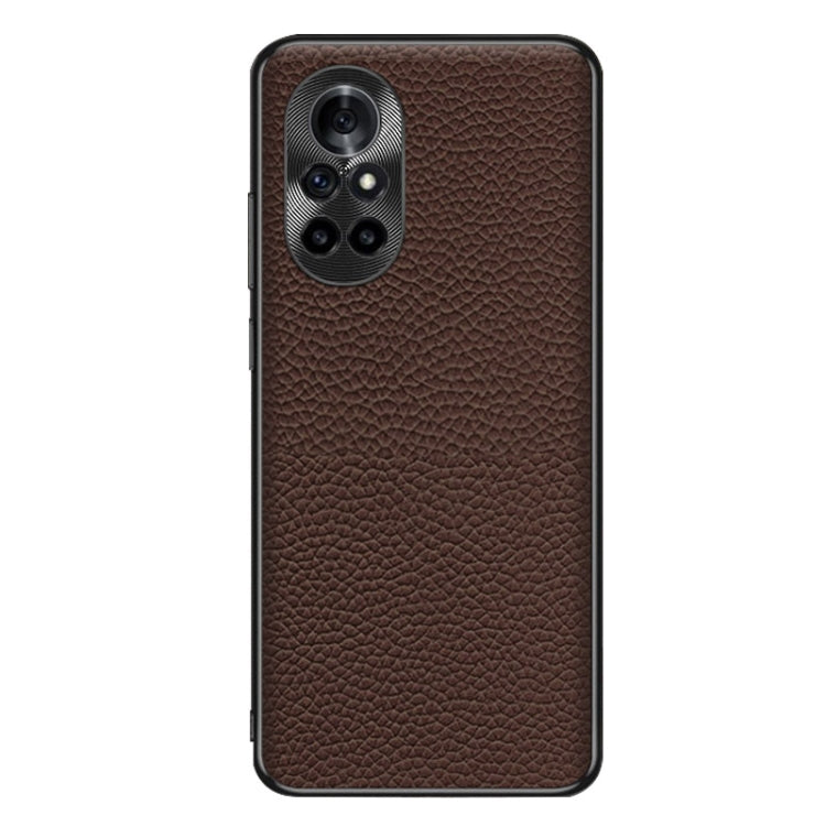Funda de Teléfono Huawei Nova 8 Cuero Genuino Textura Litchi (Café)