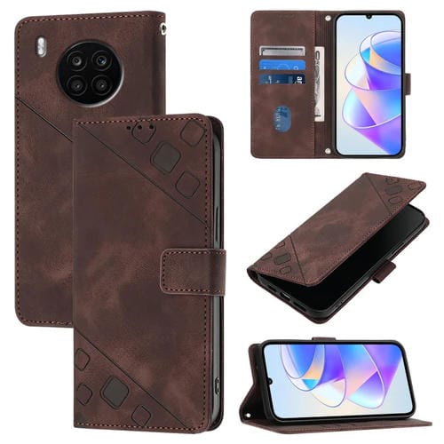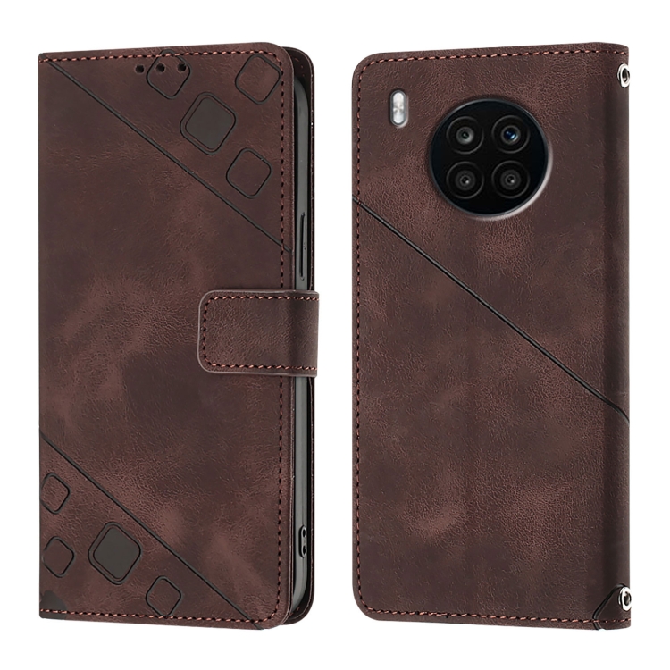 Funda de Cuero para Huawei Nova 8I Skin Feel en Relieve (Marrón)