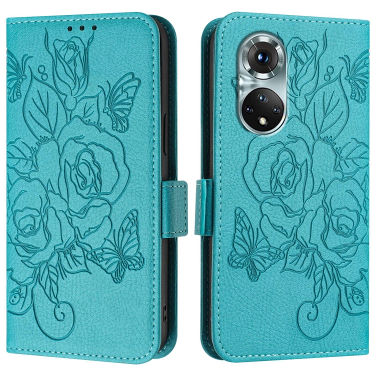 Funda de Cuero Antirrobo RFID para Huawei Nova 9 con Relieve (Azul Claro)
