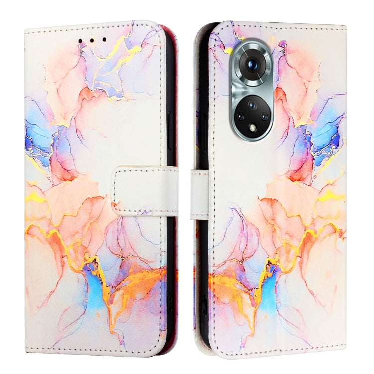 Funda de Cuero para Huawei Nova 9 Pt003 con Tapa y Patrón Mármol (Blanco)
