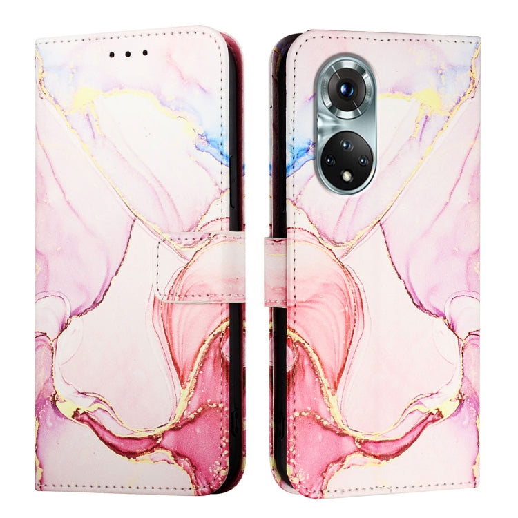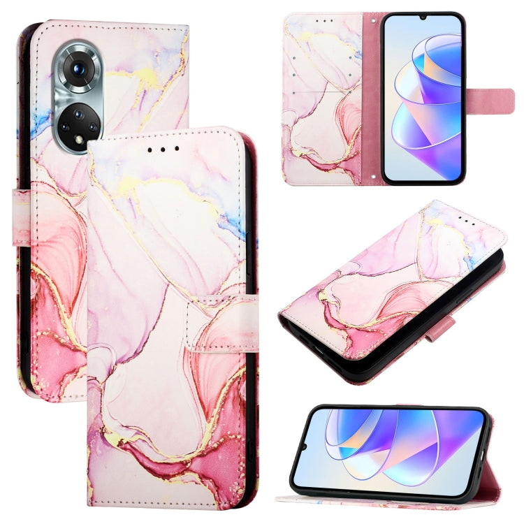 - 1x Funda de Cuero para Huawei Nova 9 Pt003 con Tapa y Patrón de Mármol (Oro Rosa)