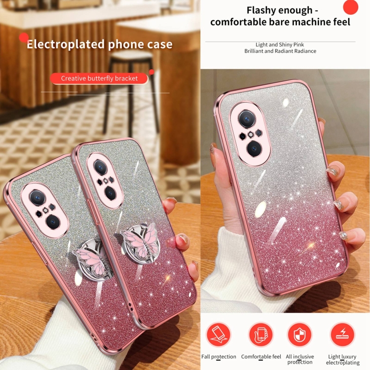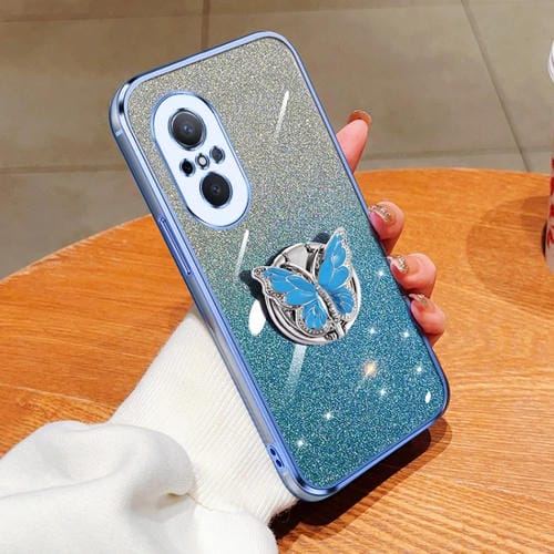 - 1x Funda TPU para Huawei Nova 9 Se con Soporte de mariposa y brillo degradado (Azul Sierra)