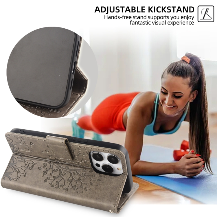 Funda de Cuero para Huawei P Smart + 2019 y Enjoy 9S con Relieve de Árbol y Ciervo (Gris)