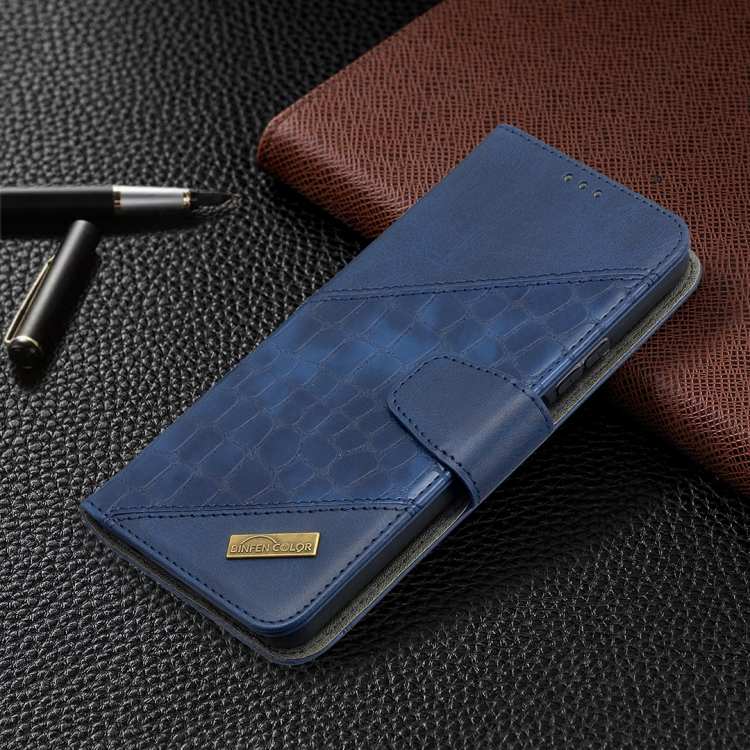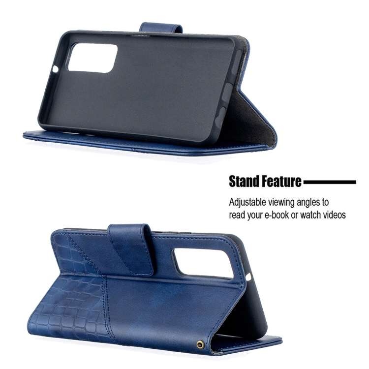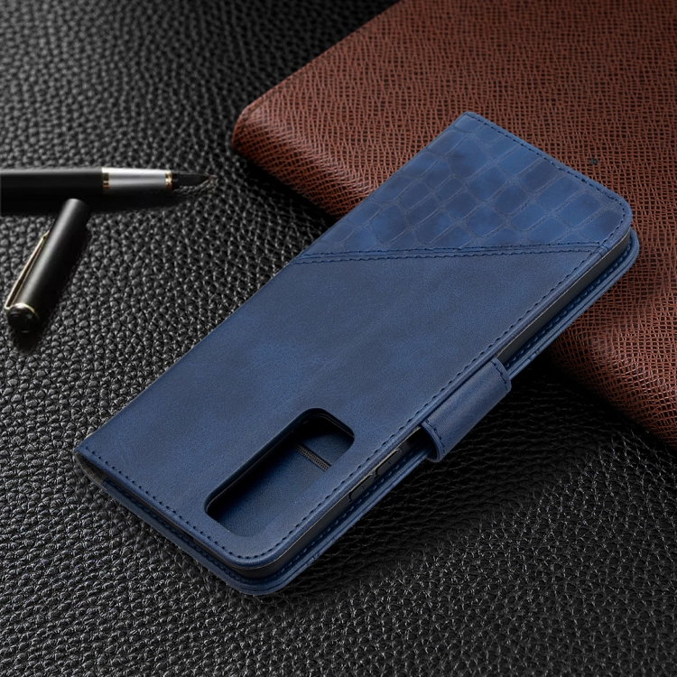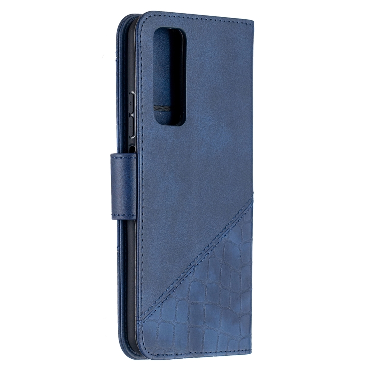 Para Huawei P Smart 2021 / Y7A Color coincidente Textura de cocodrilo Horizontal Flip PU Funda de cuero con billetera y soporte y ranuras para tarjetas (azul)