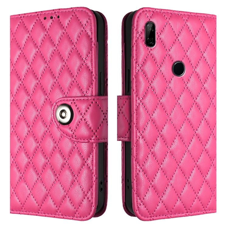 Funda para Huawei P Smart Z Y9 Prime 2019 con Tapa de Cuero Textura Rómbica y Cordón (Rojo Rosa)