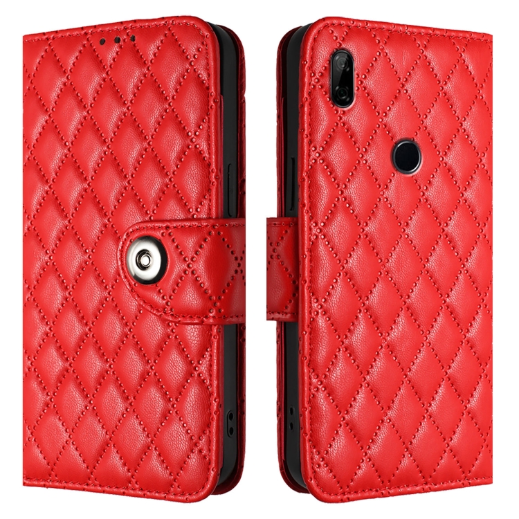 Funda para Huawei P Smart Z Y9 Prime 2019 de Cuero con Tapa Textura Rómbica y Cordón (Rojo)