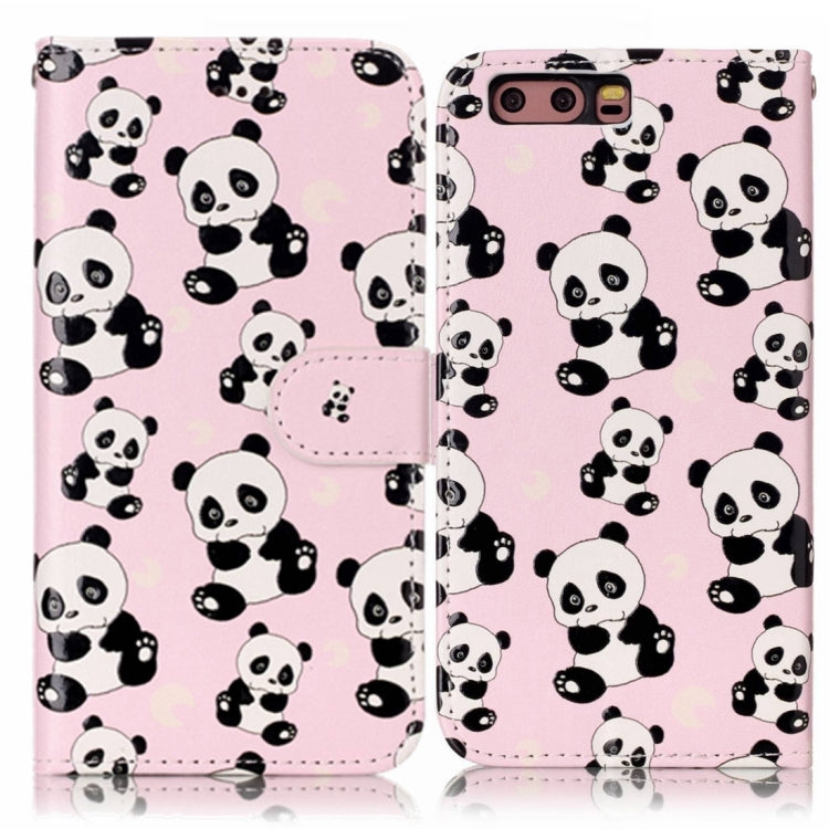 Funda de Cuero para Huawei P10 con Tapa Horizontal, Patrón Panda en Relieve, Soporte y Ranuras para Tarjetas (Negro)