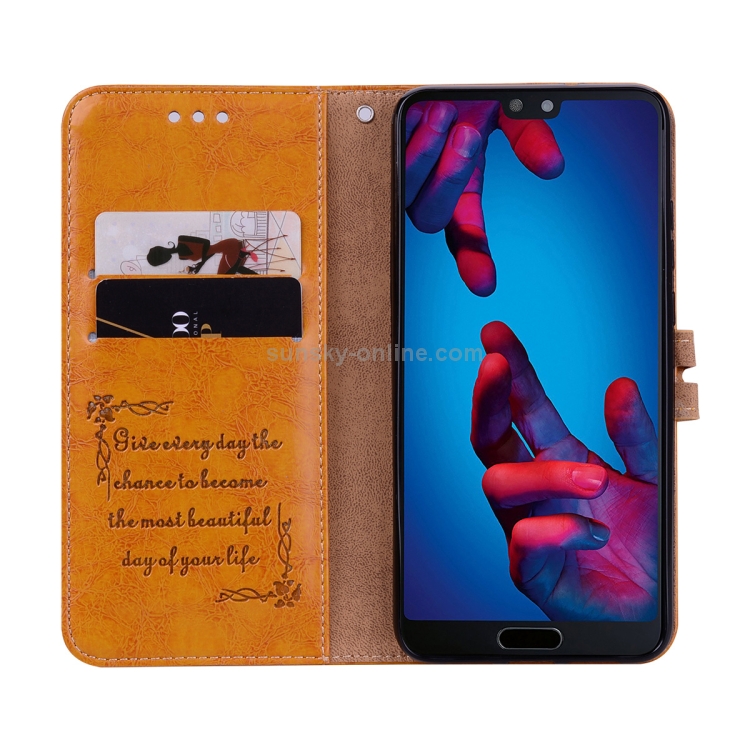 Funda de Cuero para Huawei P20 Business Style con Tapa Horizontal, Soporte, Ranuras y Billetera (Marrón)