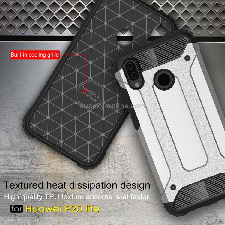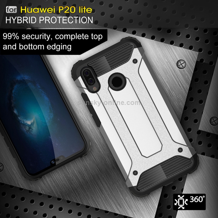Estuche Contraportada para Huawei P20 Lite con TPU + PC Resistente de Cuerpo Completo (Plata)