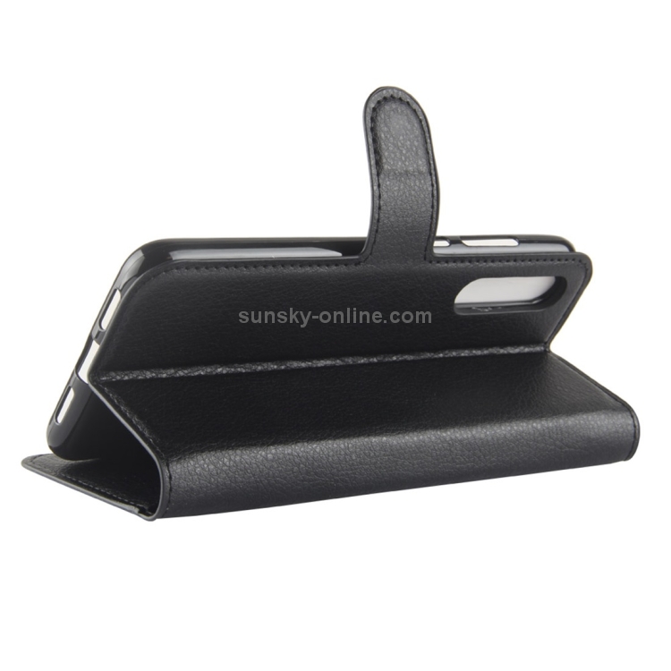 Funda de Cuero para Huawei P20 Pro con Tapa Horizontal, Textura Litchi, Billetera y Soporte (Negro)