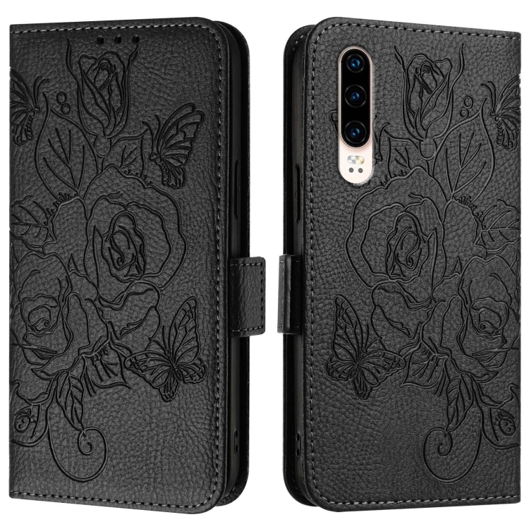 - 1x Funda de Cuero Antirrobo RFID para Huawei P30 con Relieve Rosa (Negro)