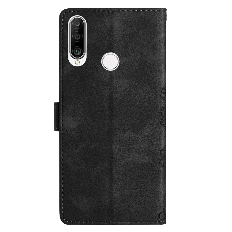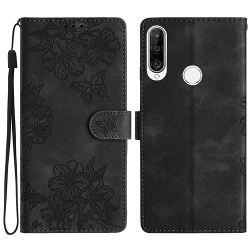 Funda para Huawei P30 Lite Cherry Blossom Butterfly Skin Feel de PU en Relieve (Negro)