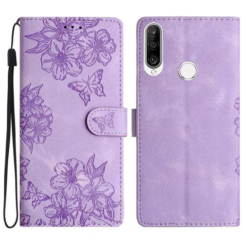 Funda para Huawei P30 Lite Cherry Blossom Butterfly Skin Feel en PU Relieve (Púrpura)