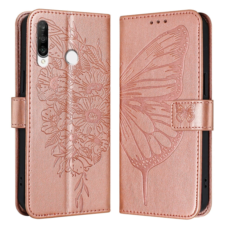 Funda de Cuero Huawei P30 Lite Nova 4E con Mariposa en Relieve (Oro Rosa)