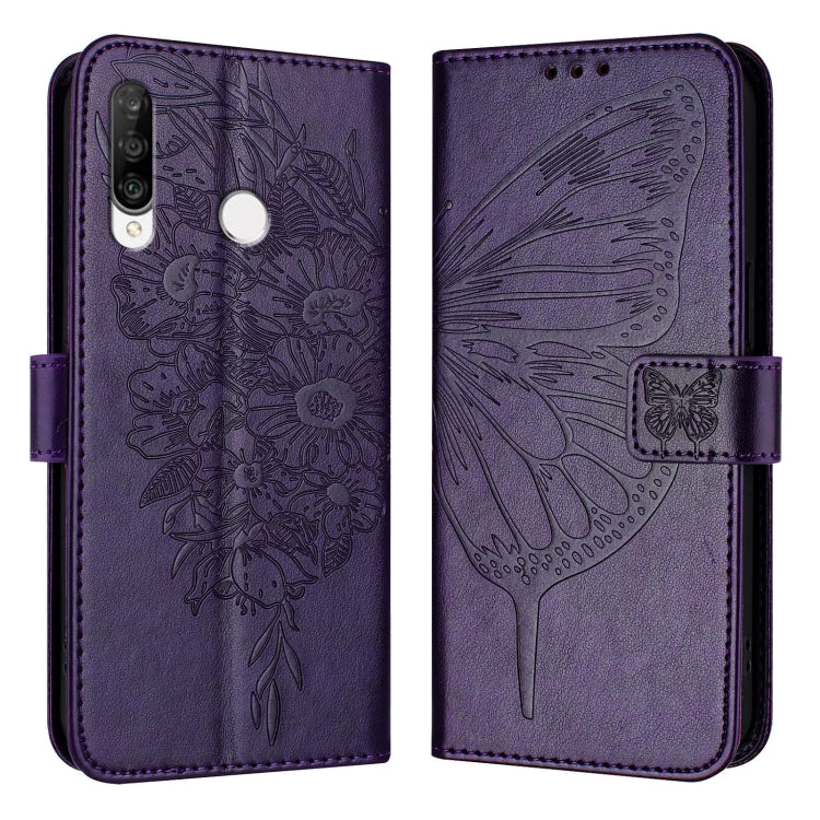 Funda para Huawei P30 Lite Nova 4E de Cuero con Mariposa en Relieve (Púrpura Oscuro)