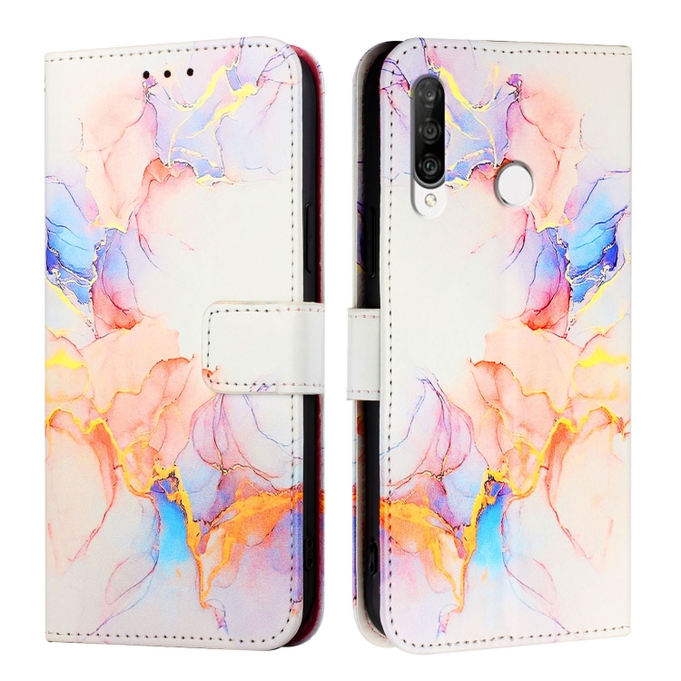 Funda de Cuero para Huawei P30 Lite / Nova 4E Pt003 con Tapa y Patrón Mármol (Ls004 Mármol Blanco)